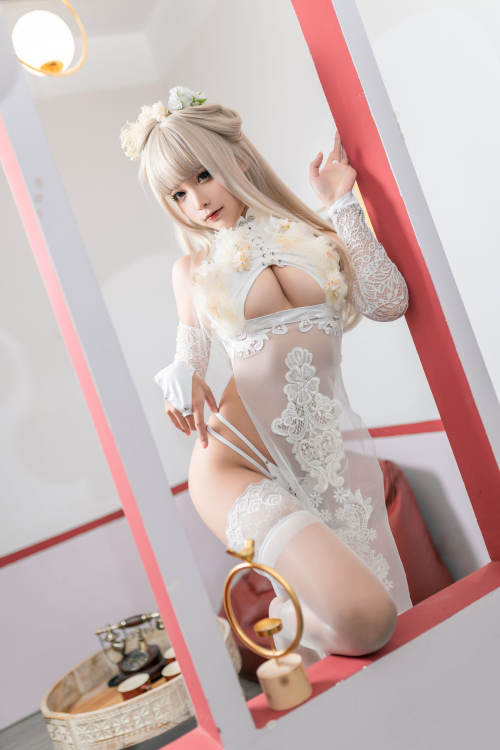 动漫博主蠢沫沫 – 歪萌白旗袍 / 21P